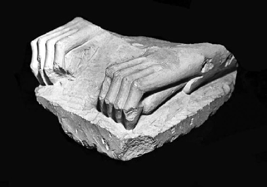 Fragmento escultórico realizado en piedra caliza blanca que representa las garras de un felino. Sobre los restos de un plinto se representan las garras de un animal. Seguramente se trata de las delanteras, ya que la parte delantera del plinto ha sido aplanada. Su talla es muy esquemática, se distinguen cuatro dedos doblados y con las falanges indicadas por vértices. Se aprecian dos protuberancias alargadas en los laterales. Esta pieza apareció en el relleno de la sepultura de empedrado tumular nº 19, cuya cronología es del siglo V-IV a. C. La pieza pertenecía, pués, a algún monumento de fecha anterior, al igual que el resto de los ejemplares.